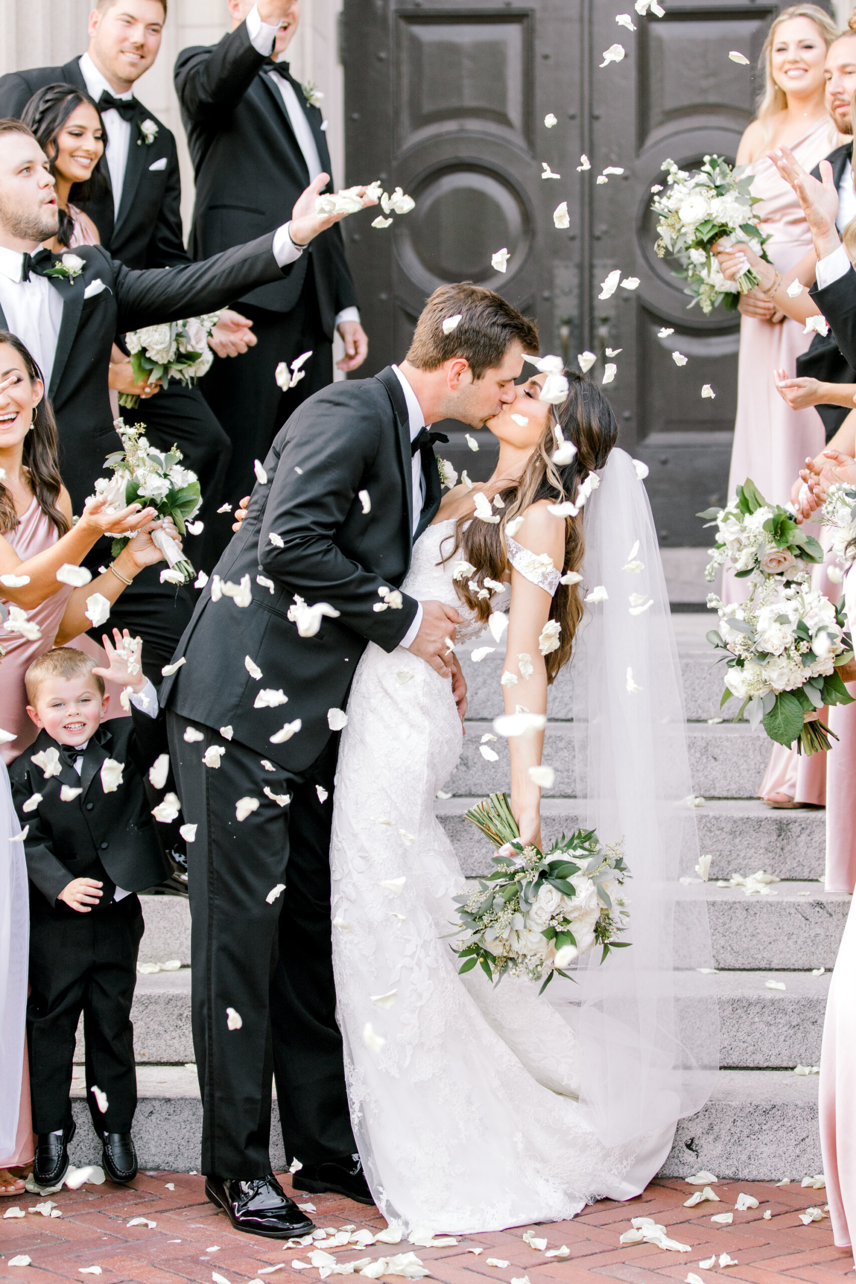 The ceremony was at the Cathedral of the Sacred Heart. She wanted her wedding to feel classic, traditional, timeless, and elegant. Her dress, ceremony and photos were the epitome of timeless and classic! She is so glad she splurged on the videographer, “photos are important and so special but the moments my videographer was able to capture are priceless. From my first touch with Kyle to my moms welcome speech, I’ll forever be thankful to have those moments recorded.”
