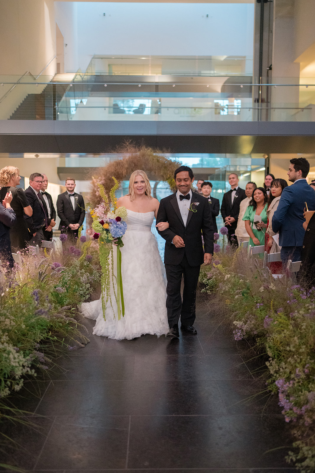 One of the best parts about having a wedding at an art museum is getting to see all the stunning art! “ We had the ceremony in the Atrium and the reception in the Marble Hall. Guests got to go through the modern art exhibit on their way to cocktail hour and they could peruse certain galleries throughout the night. It was a perfect venue.”