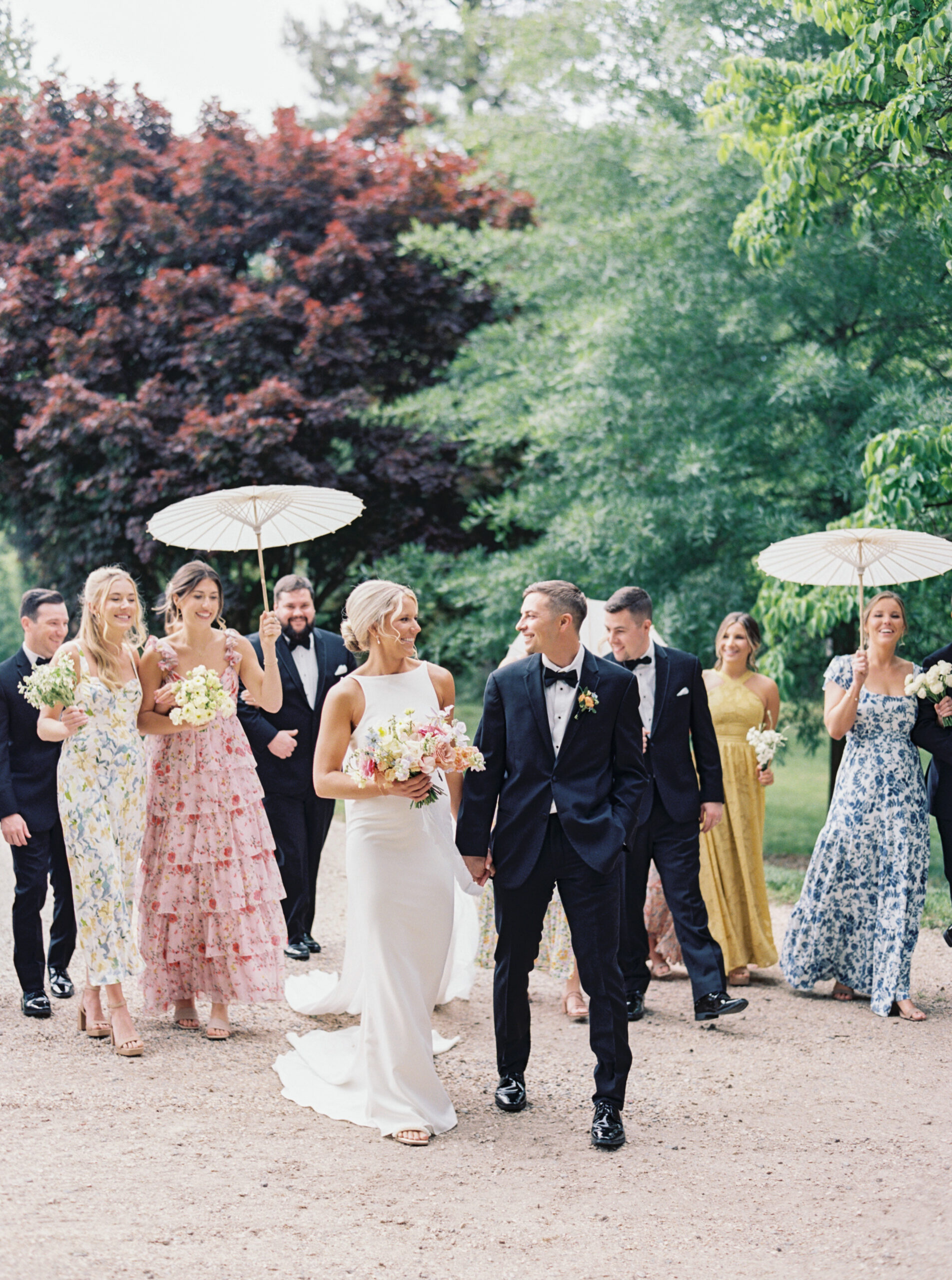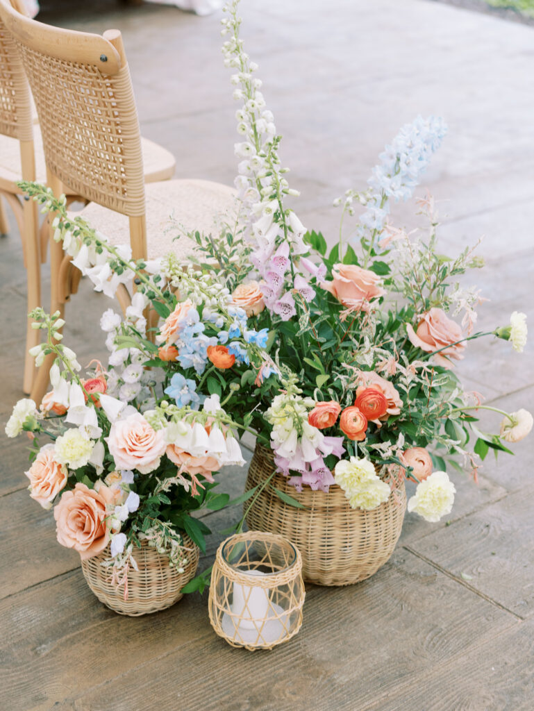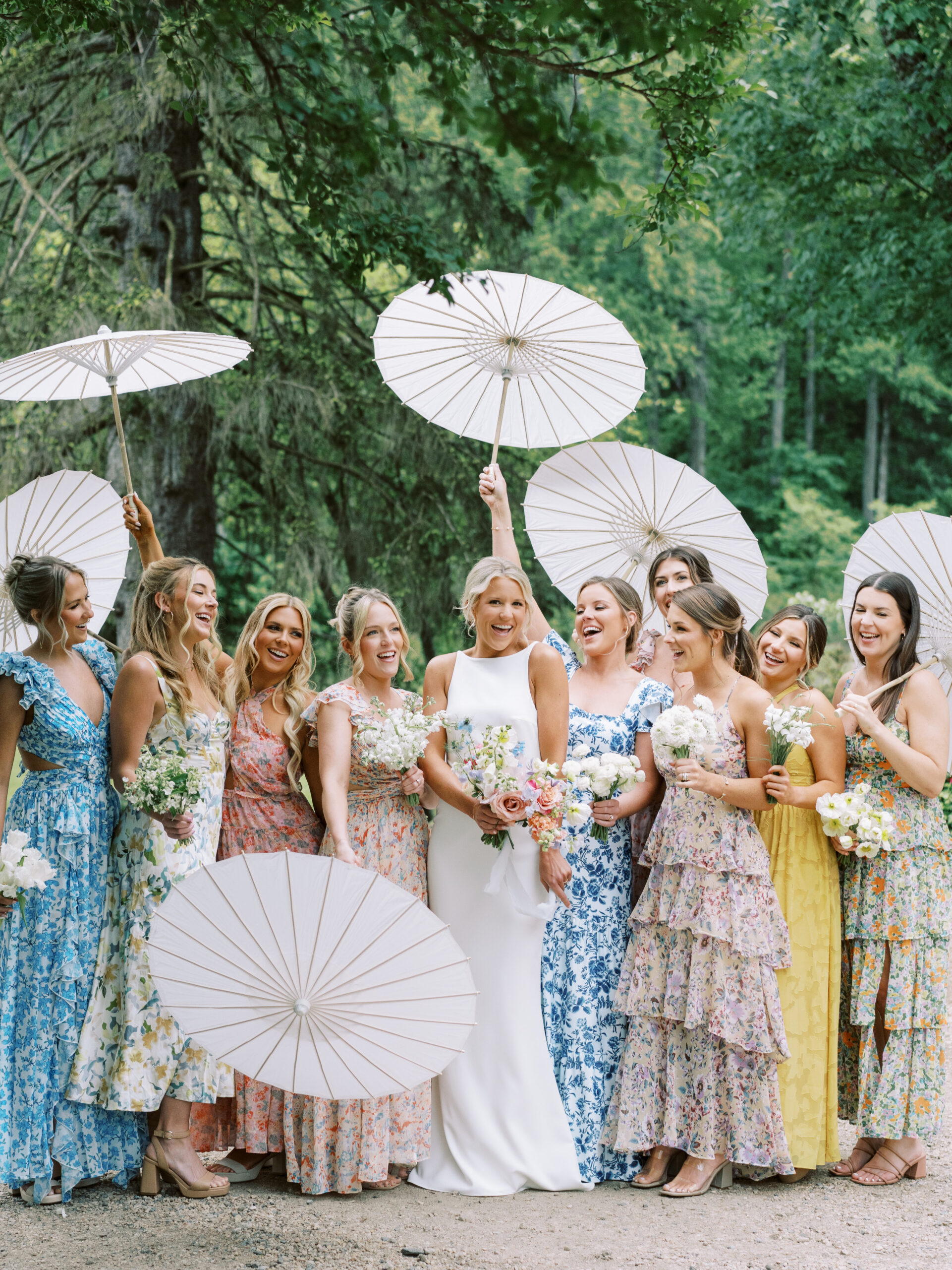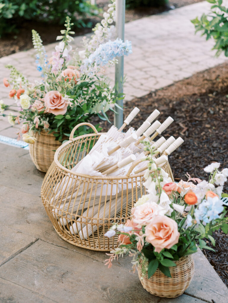 She prioritized the day of details and ensured her guests had a rememberable experience. From the beautiful rattan details and colorful florals throughout, to the parasols for her bridal party and guests, Kelsey thought of it all.