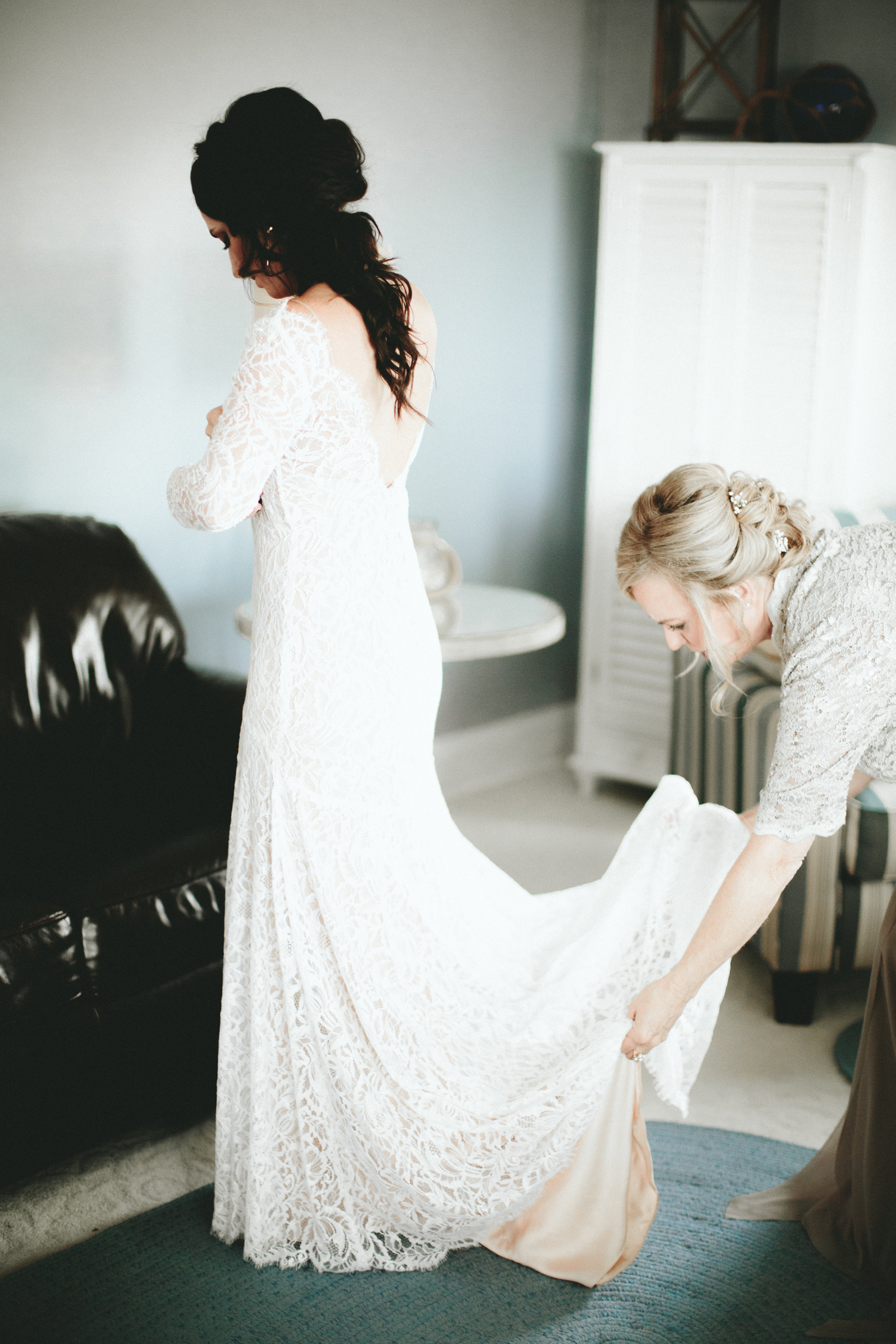 This one’s personal y’all. I had the sweet privilege of helping my dear friend design a custom gown for her wedding day. When I opened Annalise, I never imagined having this opportunity and how precious the memory will forever be to me. Abbey and her mom flew to Richmond to spend a few days and to hopefully find “the one” with me at the boutique. She had already tried on many dresses in Denver and had several styles swirling around in her head but she was still not completely sure what she wanted exactly. What she did know was that she loved an open back, sleeves, and the boho look but wanted to look back in many years and love her wedding dress as much as she did the day she wore it. With lots of imagining/envisioning and trust we created her one-of-a-kind look that was a breath-taking focal point of the most perfect day, September 30th 2017.
