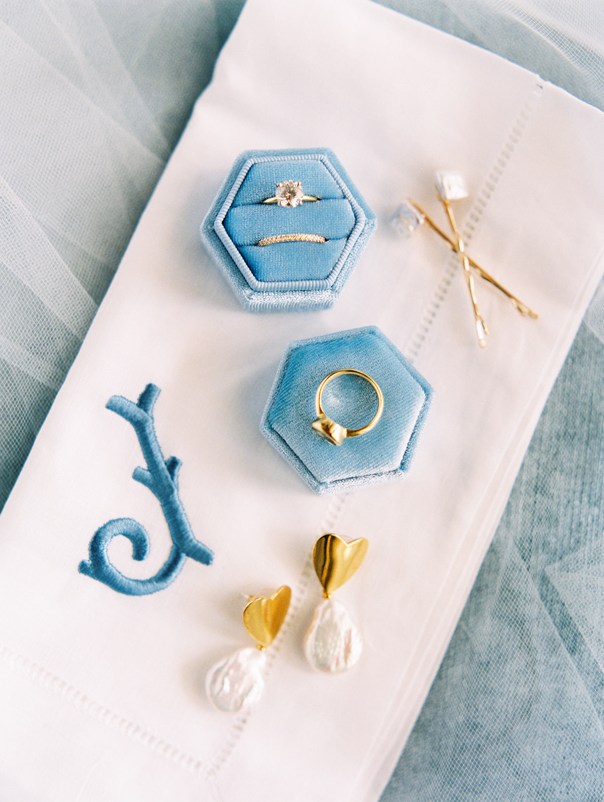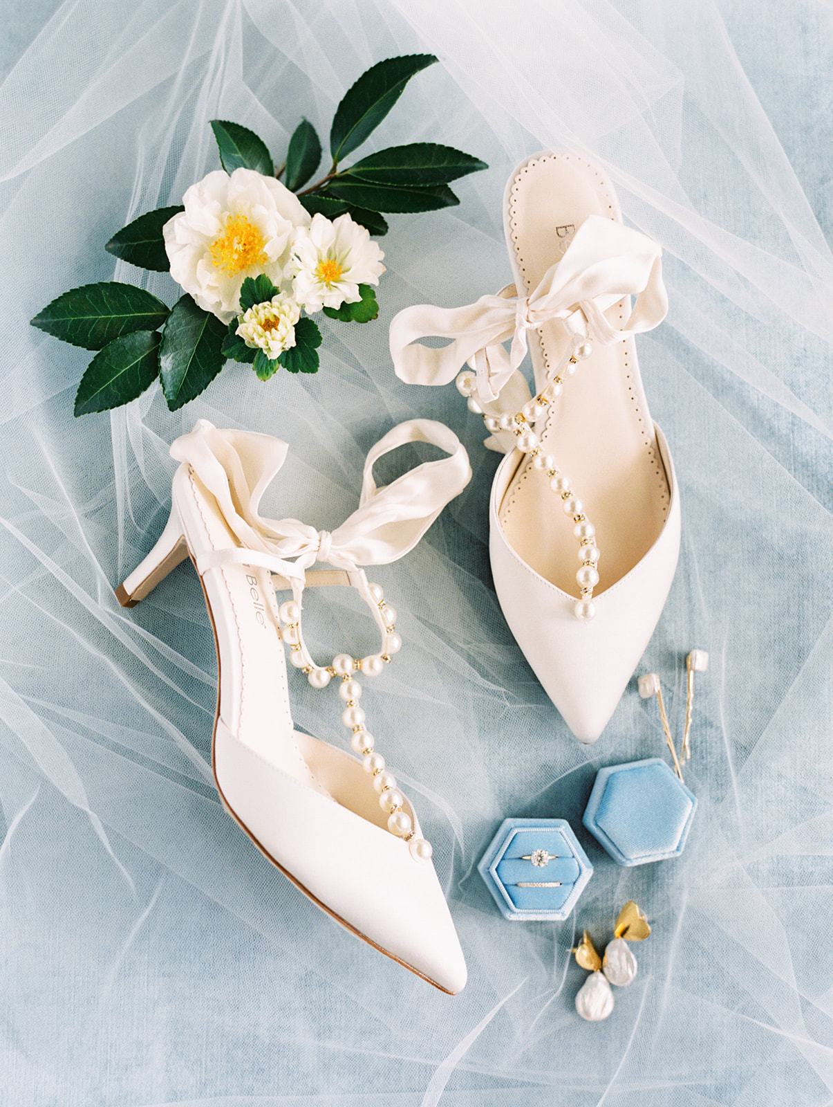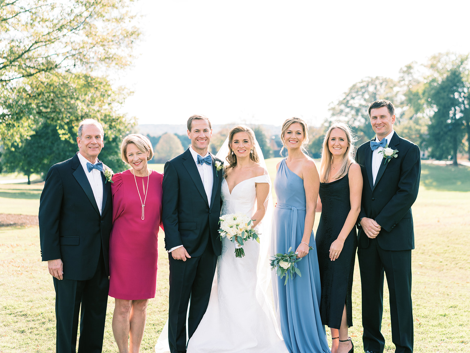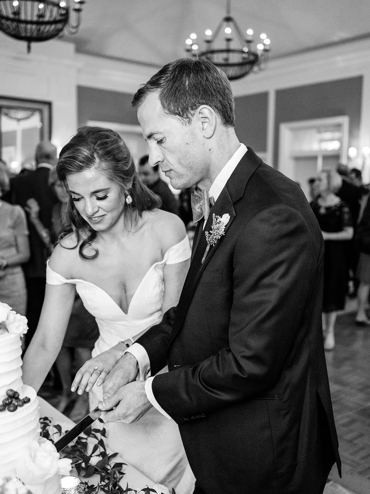An element we adored of Annie’s big day was her color palette. Which surprise, surprise she was fairly relaxed about! She knew from the get go that blue was her bridesmaids color of choice and narrowed down the vast options to three shades: Navy, Slate, and Ice. Each bridesmaid got to pick their gown style and color, some even pulling from their closet if they already owned a dress that worked. Annie explained her decision by saying, “My bridesmaids are each uniquely beautiful, and I wanted their dresses to be uniquely ‘theirs’ while still looking cohesive together”. Once the bridesmaids gowns were chosen the official color palette decisions came into play… yes, blueberries on the cake was a part of that (not to mention the groom’s favorite fruit).