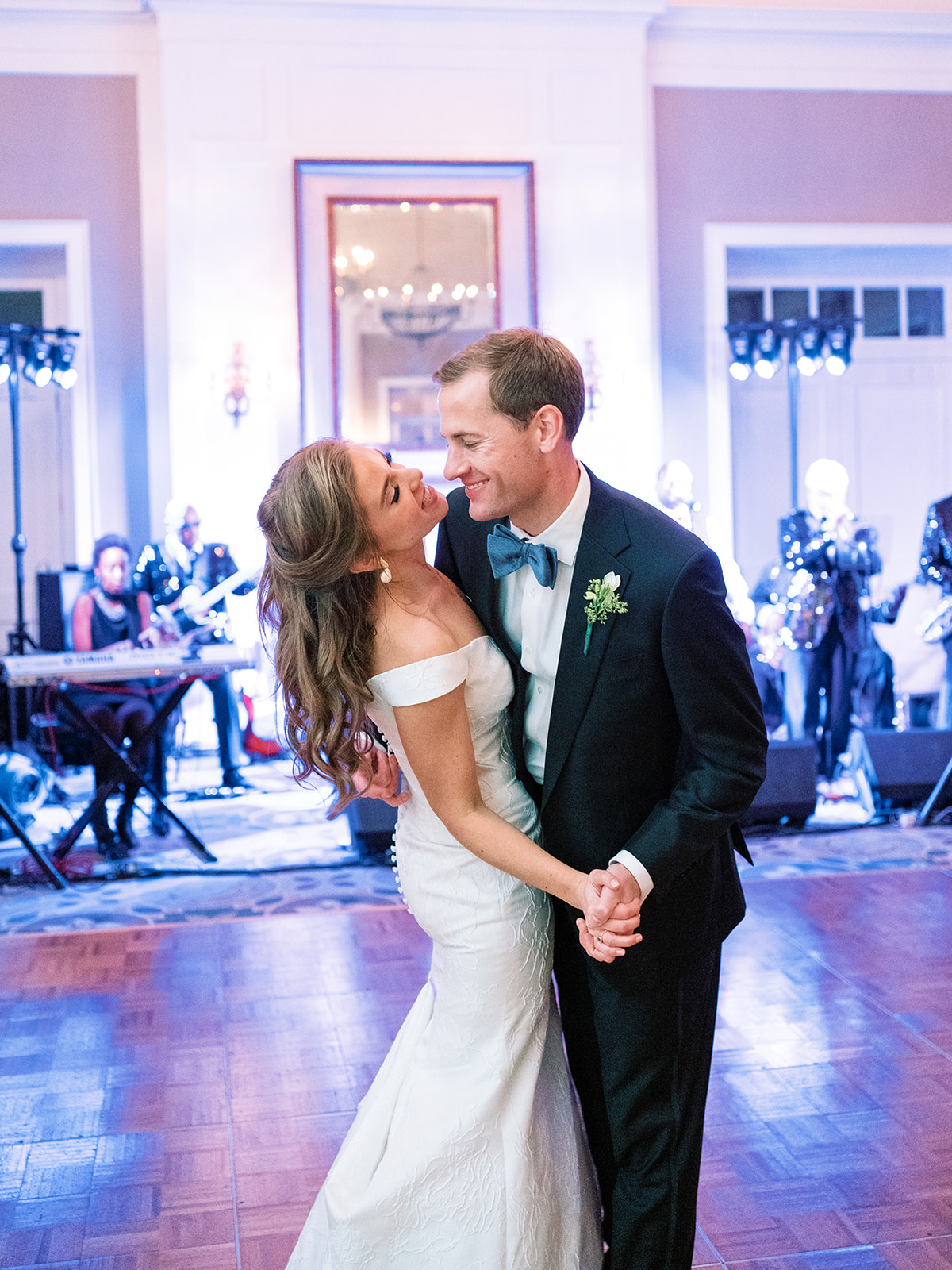 Another blissful and albeit chaotic candid came from the couple’s reception, which ultimately morphed into one giant dance party! We may or may not have cracked a smile when we saw a limbo game break out while scrolling through their gallery. In response to us asking how that all came about, Annie laughed and said, “We have the best, most fun-loving and big-hearted friends and family. And YES my friend Catherine leading the charge with the dress-limbo was definitely a dance floor highlight. Iconic, really. But honestly, our friends helped us have a great time by just being there, bringing their appetite and dancing shoes, and celebrating with us