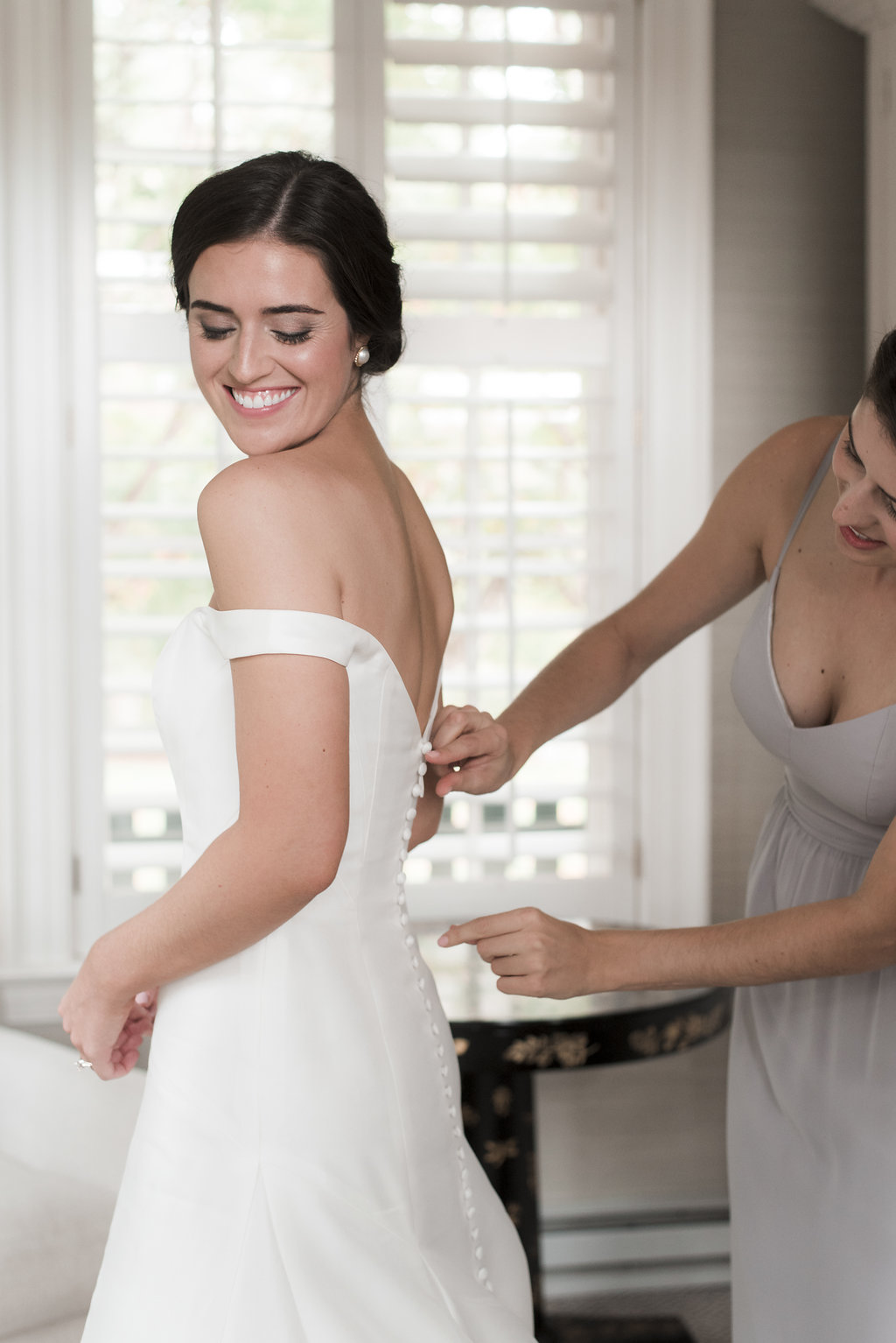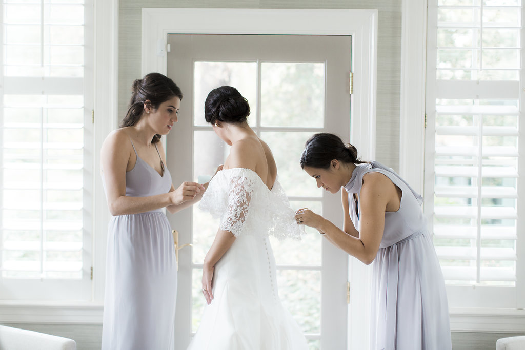 Claire’s first appointment at our boutique was full of friends & laughter. Claire is contagiously funny & with each appointment we could always expect to be entertained! Not only is Claire a comedian, she also has a killer sense of style. She wore an amazing Anne Barge gown on her big day and changed into a chic jumpsuit half way through her reception. When asked about just how she navigated the sometimes-tricky route of being true to your personal style while still feeling like a bride she stated, “My bridal style felt very true to my everyday style. I love classic pieces with interest and a little flair and I knew I wanted to feel like the best version of myself on my wedding day”. We always tell our brides comfort is key; it was clear in all of Claire’s photos just how happy & comfortable she was!