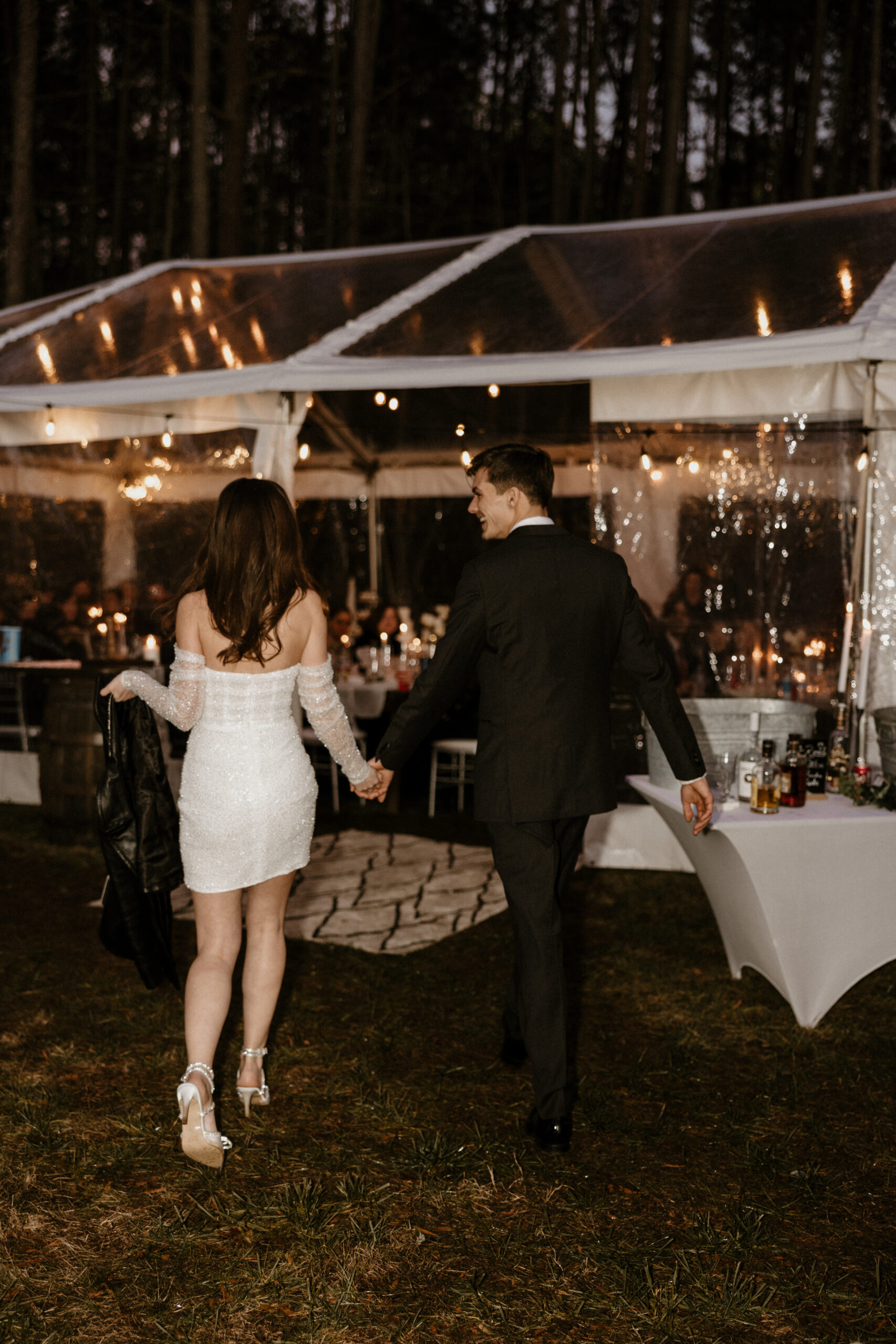 They had personalized blankets with their name and wedding date that said “ To have and to hold in case you get cold”. The reception was held in a gathering tent to stay warm.