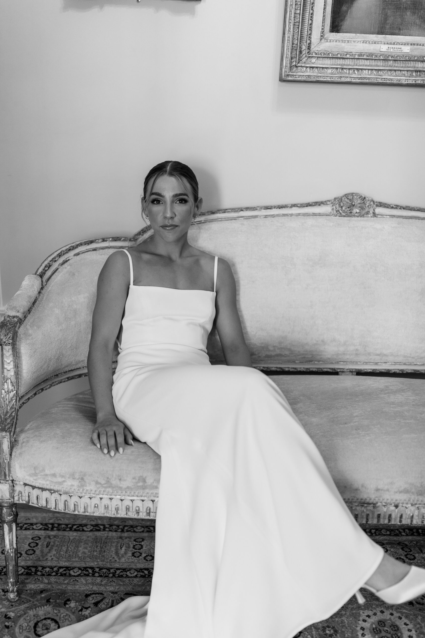 When it came to wedding dress shopping Clara “initially came in desiring something more edgy and beaded.” Alyssa Kristin’s ‘Natalie’ dress quickly changed her mind.