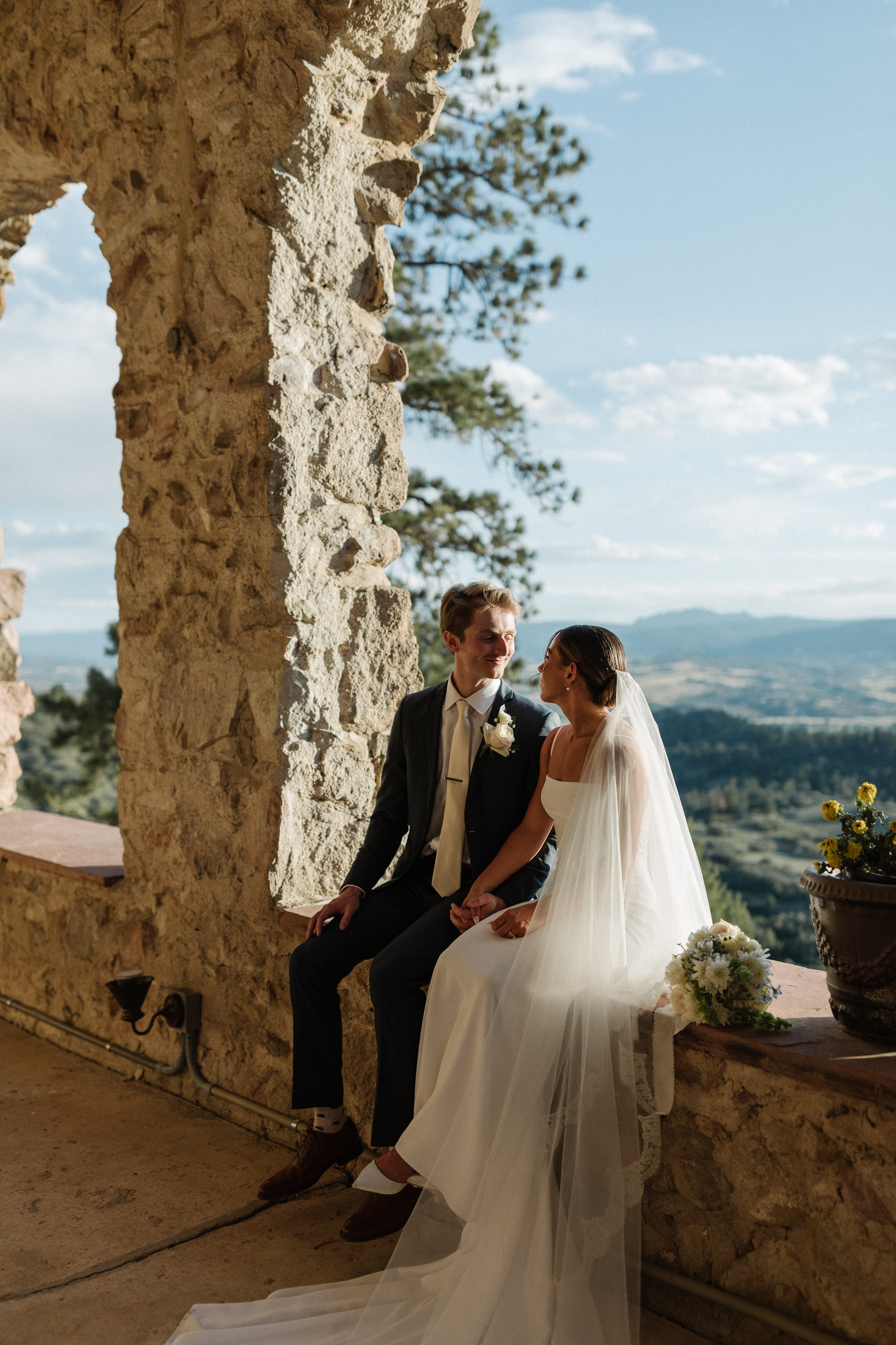 This timeless castle wedding in Sedalia, Colorado wedding looks straight out of a Vogue Weddings Magazine! Which makes sense since that was our bride, Clara’s, vision. This stunning wedding took place at Cherokee Ranch and Castle in Sedalia, Colorado. Clara said when they saw the venue the first time “it was breathtaking”.