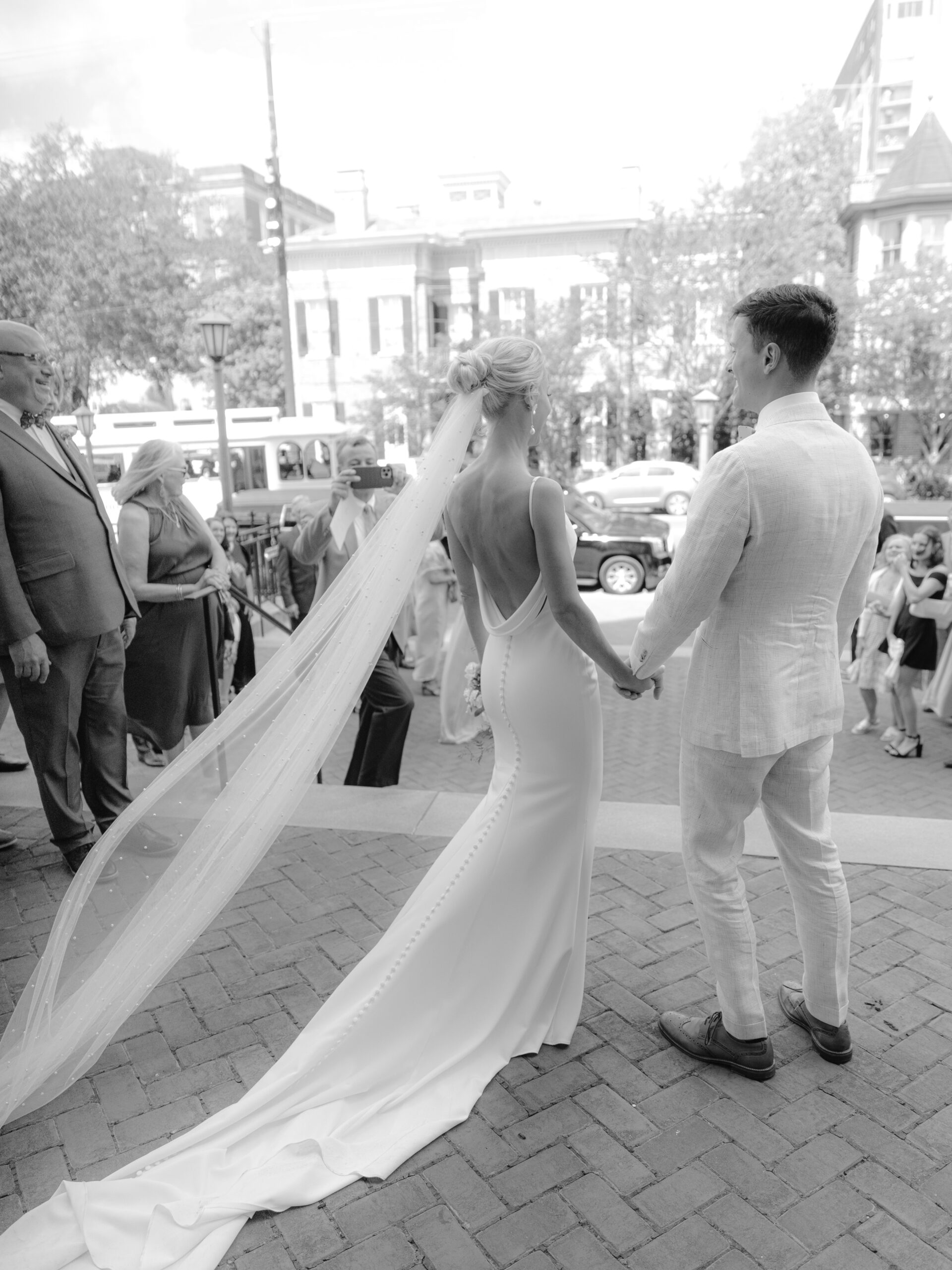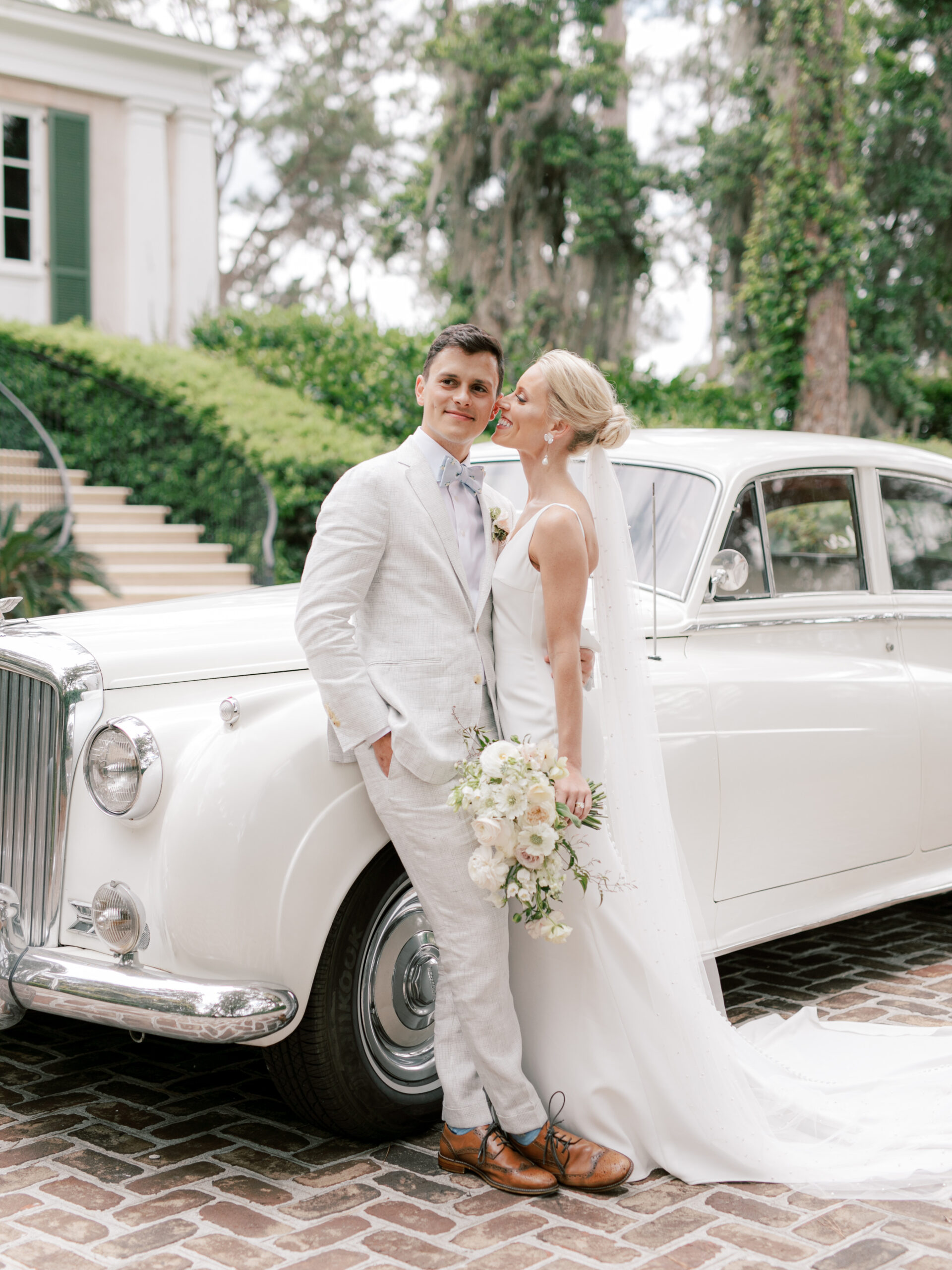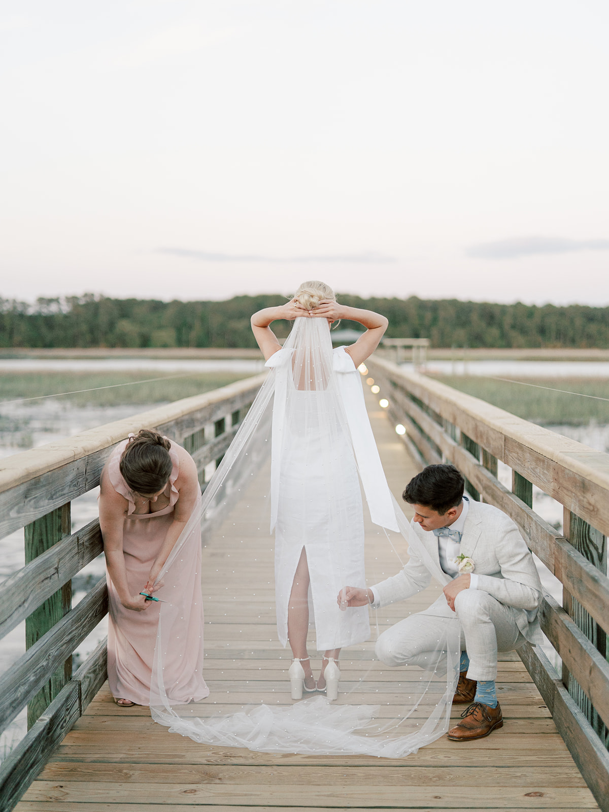 Bride & Groom: Nicole & Rob / Dress Designer: Made With Love / Veil Designer: Untamed Petals / Ceremony Venue: Cathedral Basilica of St. John the Baptist / Reception Venue: Oldfield River Club / Photography: Laura Anne Watson Photography / Planner: Tara Skinner with The Virginia Wedding Planner / Hair & Makeup: Bride’s Side Beauty / Stationery: Inquisited / Paper, Welcome Sign, & Signage: The Horseshoe Crab / Catering & Bar: Oldfield River Club / Florals: Gray Harper Florals / DJ: Island Sound / String Trio: Charleston Virtuosi / Rentals: Savannah Vintage Rentals, Beachview Event Rentals, & Amazing Event Rentals / Linens: BBJ La Tavola / Bridesmaids Dresses: Show Me Your Mumu / Seamstress: Seams Alterations / Transportation: Old Savannah Tours & Callan’s Classics